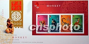 一月四日,香港郵政發行新一套農歷新年“歲次甲申(猴年)”特別郵票。圖為其首日封。作者:潘索菲