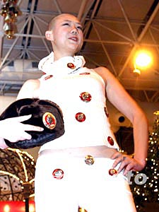 新春佳節即將來臨,各種聯誼活動不斷推新,一位光頭模特在聯誼會上披掛毛主席像章上臺表演。中新社記者:史利