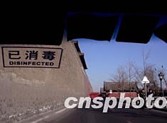 一月上旬,一輛車窗上貼著“已消毒”標志的出租車駛過北京故宮墻外。連日來,北京的出租車為預防SARS卷土重來,紛紛采取消毒措施,希望乘客放心乘坐。中新社記者:賈國榮