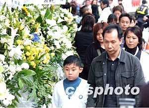 香港著名藝人梅艷芳喪禮于元月十一日設靈公祭, 眾多市民來到香港殯儀館設立的梅艷芳靈堂致祭。 中新社記者:錢興強