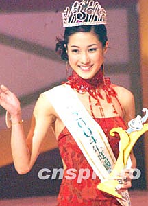 中新網1月18日電 “2004年度國際華裔小姐競選”昨晚在香港將軍澳電視廣播城舉行,來自溫哥華的鐘嘉欣以黑馬姿態勝出,勇奪冠軍。香港的曹敏莉也不負眾望,奪得亞軍及友誼小姐;季軍及“笑靨花容小姐”獎項則由來自馬尼拉的洪巧玲奪得。