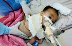 圖:越南一名患禽流感的兒童在醫院進行搶救