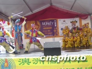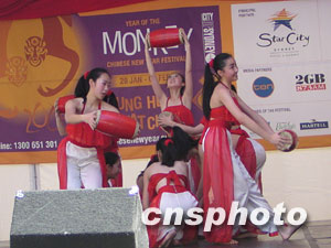 澳洲僑青社24日在悉尼中國城德信街舉行盛大的新春聯歡會,數以萬計的華人華僑和各界人士出席了開幕儀式,并觀看了精彩的文藝節目。此次新春聯歡會一連兩日,由北京藝術團、澳洲僑青社、悉尼西區華人協會以及黃河合唱團的藝人獻演豐富多彩的歌舞和音樂節目,令悉尼各界人士耳目一新。中新社記者劉雨生攝