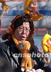 春節(jié)期間,北京各大廟會熱鬧非凡,一名賣猴玩具的小販正忙碌著在廟會上淘金。“拜神、購物、娛樂”是人們逛廟會的主要活動,廟會上旺盛的人氣帶動了獨特的廟會經(jīng)濟。中新社記者:張煒