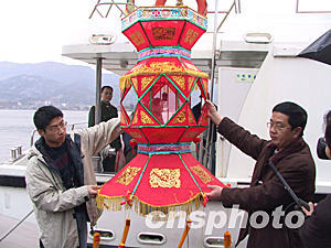 為增添馬祖鄉(xiāng)親元宵佳節(jié)的氣氛,馬尾經(jīng)濟(jì)文化交流合作聯(lián)誼會還專門制作了一批大小花燈今天由“閩珠二號”客輪運送馬祖。