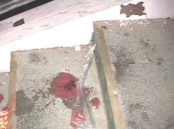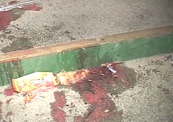 踩擠事故現場留下的血跡(電視截圖)