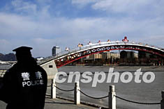 二月六日,北京密云元宵燈會(huì)踩擠事故現(xiàn)場(chǎng)--云虹橋被警方控制保護(hù)。中新社記者:宋吉河