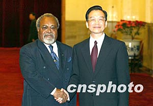 組圖:溫家寶會(huì)見巴布亞新幾內(nèi)亞總理索馬雷