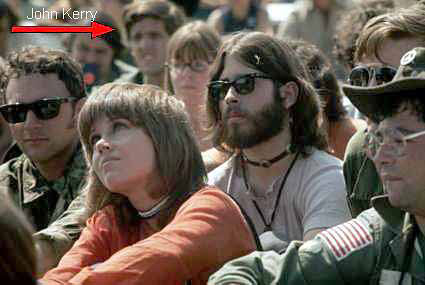 這張照片出現在保守派漢尼迪和林巴的網站上,它攝于1970年的勞工節的聚會,照片中,簡·方達和克里坐于最顯著的位置,還有幾排人緊隨其后,老兵們認為,克里34年前與簡方達的聯系是“給越戰老兵的一記耳光”。