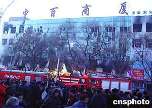 2月15日中午十一時二十分左右,吉林市中百商廈發生特大火災,截至十五時四十分,大火已被撲滅。據吉林省有關部門提供的情況,截止十六點四十分,火災至少造成五十一人死亡、已經有一百二十名群眾被救出,其中受傷七十一人。有關起火原因、傷亡情況正在調查之中。作者:朱萬昌