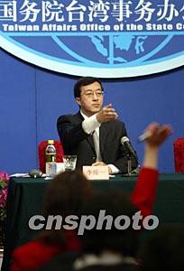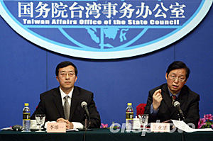 中國國務院臺灣事務辦公室二月二十五日在北京釣魚臺大酒店舉行新聞發布會,新聞發言人李維一邀請新聞出版總署臺灣事務辦公室副主任王化鵬介紹兩岸新聞出版交流概況。中新社記者:毛建軍