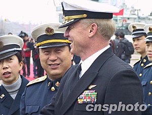 據(jù)悉,“藍(lán)嶺”號(hào)指揮艦訪(fǎng)滬期間,威拉德一行拜會(huì)了海軍東海艦隊(duì)司令員趙國(guó)鈞中將和上海市副市長(zhǎng)馮國(guó)勤,美艦官兵參觀(guān)了中國(guó)自行研制的導(dǎo)彈護(hù)衛(wèi)艦,游覽了上海市容,中美海軍官兵還舉行了軍樂(lè)表演交流和籃球友誼比賽等一系列聯(lián)誼活動(dòng)。