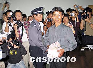 三月十六日下午,海南省公安廳在三亞市公安局舉行緝捕馬加爵獎勵舉報人新聞發布會,三亞市民陳賢壯因舉報有功獲得公安部獎金20萬元,及三亞市委、市政府獎金5萬元。作者:關向東