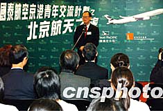 國泰航空與香港青年協會三月十六日舉行首屆“國泰航空京港青少年交流計劃”啟動儀式,圖為該公司董事兼常務總裁陳南祿在儀式上致辭。作者:錢興強
