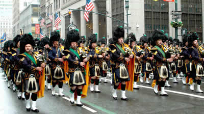 十七日,雖然嚴寒,卻沒有影響紐約愛爾蘭人慶祝節日的興致,愛爾蘭風笛手仍舊穿著花格短裙沿著曼哈頓五大道緩緩行進。引人注目的還有游行隊伍中身著迷彩服的美國戰士,這是往年并不多見的一只隊伍,美伊戰爭后,這只隊伍成為美國愛爾蘭裔人的驕傲。
