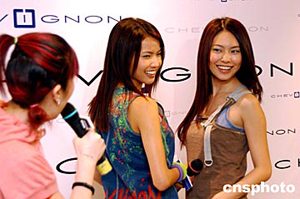 法國(guó)品牌CHEVIGNON 亞洲首家全新概念店,3月25日在香港時(shí)代廣場(chǎng)揭幕。香港流行音樂組合2R黃婉佩、黃婉君在時(shí)代廣場(chǎng)為法國(guó)品牌時(shí)裝作宣傳,演繹潮流時(shí)尚新感覺。作者:洪少葵