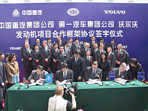 中國重型汽車集團有限公司董事長馬純濟在簽字儀式后說,作為世界發動機制造業的頂級企業,沃爾沃集團第一次把發動機制造技術引入中國市場,這充分顯示沃爾沃集團置身并參與中國的經濟發展。他認為,這將大大加快中國發動機制造行業與世界先進水平接軌的進程。中國一汽集團公司總裁竺延風也高度評價了沃爾沃對中國發動機制造業所作的貢獻。