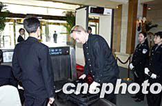 四月十三日上午,美國副總統切尼訪華將下榻的北京國際俱樂部飯店開始對進入人員實施安檢,以確保安全。中新社記者:毛建軍