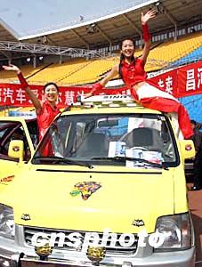 北京春季汽車大型展銷會四月十四日在工人體育場拉開帷幕,十萬元左右的新款國產經濟型轎車引人矚目。中新社記者:張勤