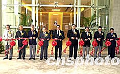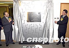 圖為澳門特區行政長官何厚鏵為「第四屆東亞運動會澳門組委會總部」新大樓揭牌。