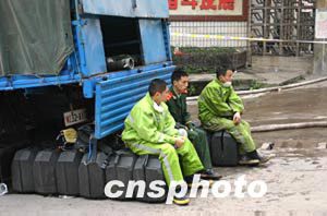 四月十七日,武警戰(zhàn)士在重慶天原化工總廠外嚴陣以待。十五日晚,重慶市天原化工總廠發(fā)生氯氣泄漏事故,有十五萬人撤離.作者:鄒輝