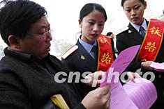 圖:太原火車站發放宣傳單宣傳火車提速