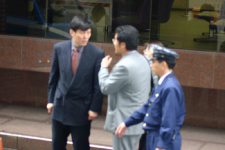 中國駐大阪總領館領事部負責人趙大維(左一)在現場與日本警方進行交涉。(《關西華文時報》叢中笑/春風攝影報道)
