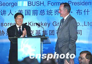四月二十四日中午,美國前總統布什在海南博鰲舉行的主題午餐會上發表演講,除談到全球反恐、推進全球貿易自由化等問題外,還深情回憶起自己在中國擔任外交官期間與中國人民的友誼。中新社記者:鄭萍萍
