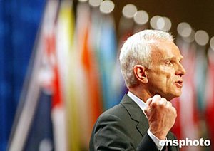 德國寶馬集團董事長龐克四月二十五日在企業家峰會上演講。亞洲博鰲論壇今年首次舉行企業家峰會,會議吸引了寶馬、飛利浦、三星等世界著名企業家前來出席。中新社記者:鄭萍萍