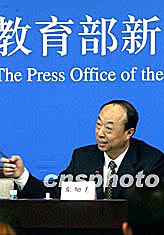 中國教育部四月二十八日舉行新聞發布會,教育部發展規劃司司長牟陽春發布2003年教育事業改革與發展的統計數據,并回答了記者提問。新聞發布會通報了高等學校和研究機構共招收研究生26.89萬人,比上年增加6.63萬人,增長32.72%。在學研究生65.13萬人,比上年增加15.03萬人,增長30%。全國普通高等教育本科、高職(專科)共招學生382.17萬人,比上年增加61.67萬人,增長19.24%。在校生達1108.56萬人,比上年增加205.2萬人,增長22.72%。中新社記者:張勤