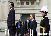 布萊爾舉行儀式歡迎溫家寶