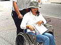 趙燕坐輪椅前往申請紐約犯罪受害人福利