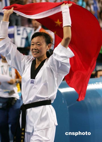 中新社雅典八月二十八日電 二十一歲的北京姑娘羅微今天在雅典奧運(yùn)會女子跆拳道六十七公斤級決賽中,以八比六戰(zhàn)勝東道主選手米斯塔基多,為中國代表拿下改寫奧運(yùn)最好成績的第二十九枚金牌。