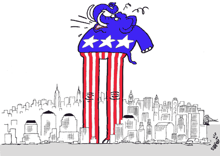 美共和黨大會期間,紐約爆發了數十萬人的反戰、反布什的示威游行,有一千多名示威者被捕。示威者的激情與共和黨大會與會者的熱情完全迸發,著實讓紐約“高燒”了一把。(來源:法《國際報刊》)