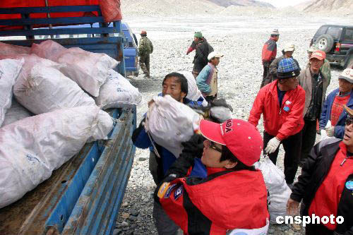 參加由西藏自治區體育局與中國科學探險協會聯合主辦的“2004地球第三極珠峰環保大行動”的二十四名志愿者,九月上旬與西藏登山協會的專業登山隊員一起,克服珠峰地區高寒、狂風、缺氧、低壓等惡劣的自然環境,對留存在海拔高度5100米-6500米的珠峰廢棄物進行為期三天的全面清掃工作。