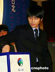 首屆中環杯圍棋賽9月15日在臺北開幕,來自中國臺北、日本、韓國的十六名著名職業棋手參賽。圖為連續兩年獲日本“本因坊”的張栩九段在抽簽,他將在首輪對陣韓國女棋手樸志恩五段。中新社記者:黃少華