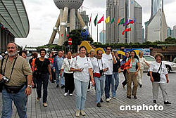 金秋時節,上海秋高氣爽,一批歐洲游客游覽浦東。上海入境游客數據全線飄紅,此間旅游委數據顯示,二零零四年上海已經接待入境旅游者二百零六點三萬人次,并繼續保持強勁增勢。據預測,上海今年接待入境旅游者有望突破三百五十萬人次,達歷史最高水平,上海旅游經濟強勁恢復。作者:潘索菲