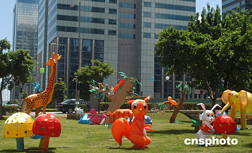 中秋將至,澳門街頭各處擺置了不少應節花燈,喜迎中秋佳節。作者:梁永強
