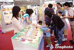 香港九廣鐵路周日在時(shí)代廣場(chǎng)舉辦展覽,推介馬鞍山、尖沙嘴新支線,進(jìn)一步拓展鐵路網(wǎng)絡(luò),計(jì)劃在2004年底落成。圖為市民參觀展覽。作者:洪少葵