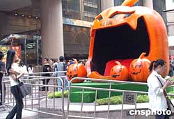 一年一度的萬圣節將臨,香港時代廣場裝飾一新,各種新裝飾的造型藝術作品充滿萬圣節氣氛。作者:錢興強