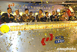 香港九廣鐵路24日在尖東站舉行尖沙咀支線啟用典禮﹐投資達41億元的尖沙咀支線下午3時正式投入使用﹐新支線將東鐵由紅磡站向南伸延至位于商業中心及購物區的尖東站。中新社記者:趙振清