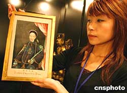 北京姑娘手捧一幅當年洋畫家為中國清朝道光皇帝繪制的精致油畫,此件一百多年收藏在歐洲的油畫,十月末被送到中國北京和上海展示,將于十一月中旬在德國納高拍賣。作者:賈國榮