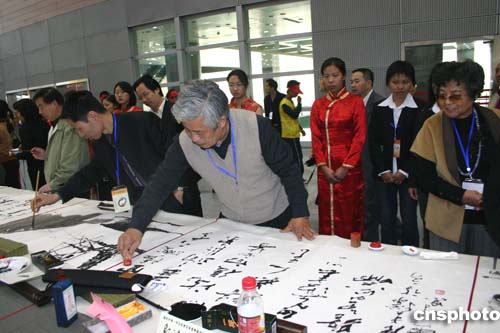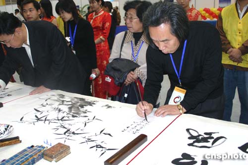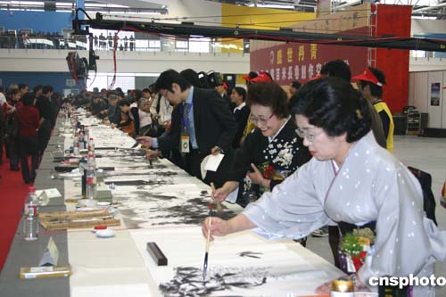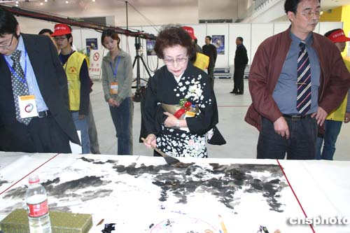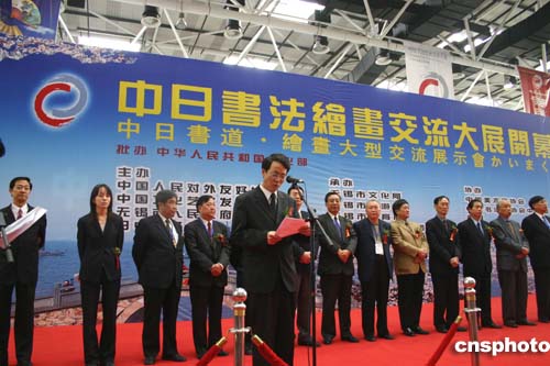 中新網11月6日電(記者邱觀史)為期三天的“中日書法繪畫交流大展”6日在美麗的太湖之濱江蘇無錫拉開帷幕。百名中日書畫家展示他們傾心裝做的200余幅作品,為觀眾獻上極富美感的視覺享受。中國文化部副部長常克仁出席開幕式并發表講話。