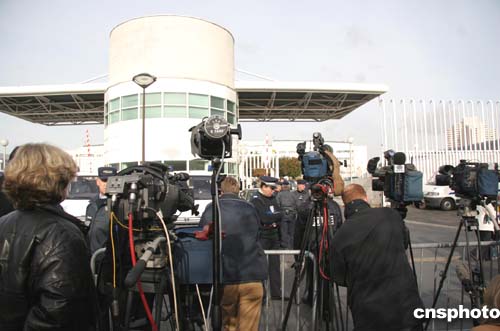 圖:世界各地記者云集阿拉法特就診醫院門外