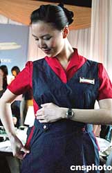 國泰航空18日在半島酒店展示即將更新的員工服裝。國泰航空的機艙服務員及香港地勤人員將于明年三月換上即日展示的新裝。作者:宋吉河