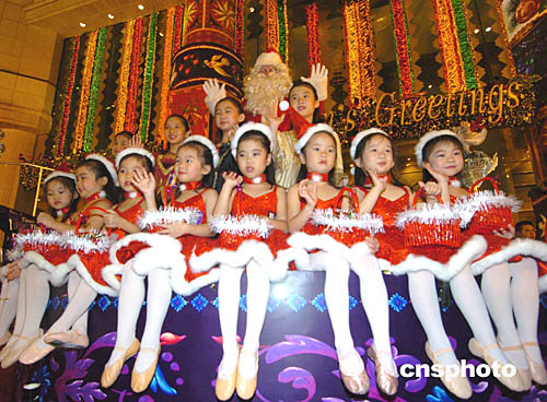 香港時代廣場2004圣誕月24日晚拉開序幕﹐今年的圣誕節裝飾以《閃爍時代夢幻曲》為主題。中新社記者:趙振清