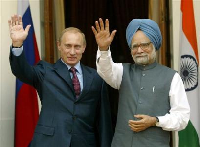 在3日普京與印度總理辛格的會晤后,雙方舉行了聯合新聞發布會。普京表示,俄羅斯將支持印度躋身聯合國安理會常任理事國行列,稱對此將不會行使一票否決權;辛格則表示,印度全力支持俄羅斯加入世貿組織,稱俄為世貿148個成員國以外最大的經濟體。