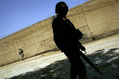 5月17日,美軍士兵在巴格達西郊的阿布格萊布監獄內值勤。