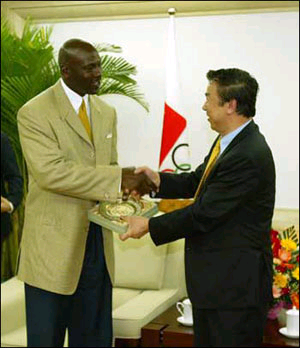 袁偉民最后對負責安排喬丹中國之行的耐克公司表示感謝,并再次強調:喬丹在中國很受歡迎,希望他今后有更多的機會來北京,來中國。