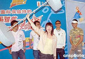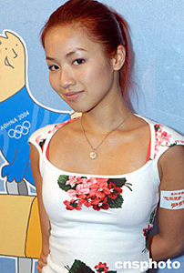 歌星鄭融5月19日在香港出席無線奧運節目《進軍雅典---燃點圣火雷霆夜》記者會,鄭融將聯同其它歌星演出「一個金牌的誕生」舞臺劇。作者:鄧慶樂